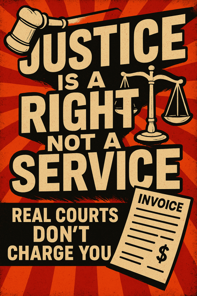 “A real court under the Judicial Branch doesn’t charge you — because justice is a right, not a service.”
